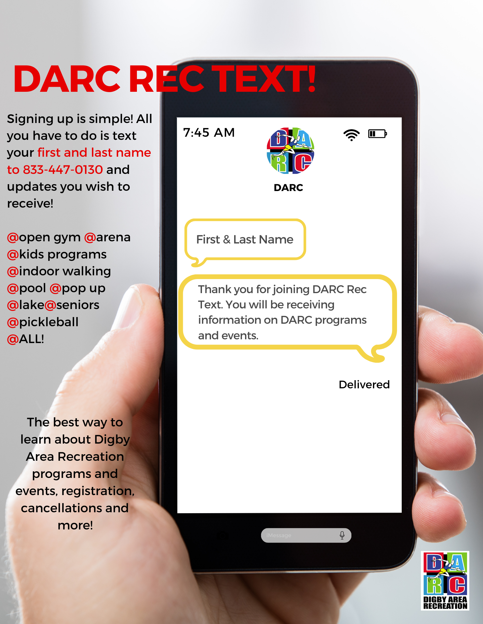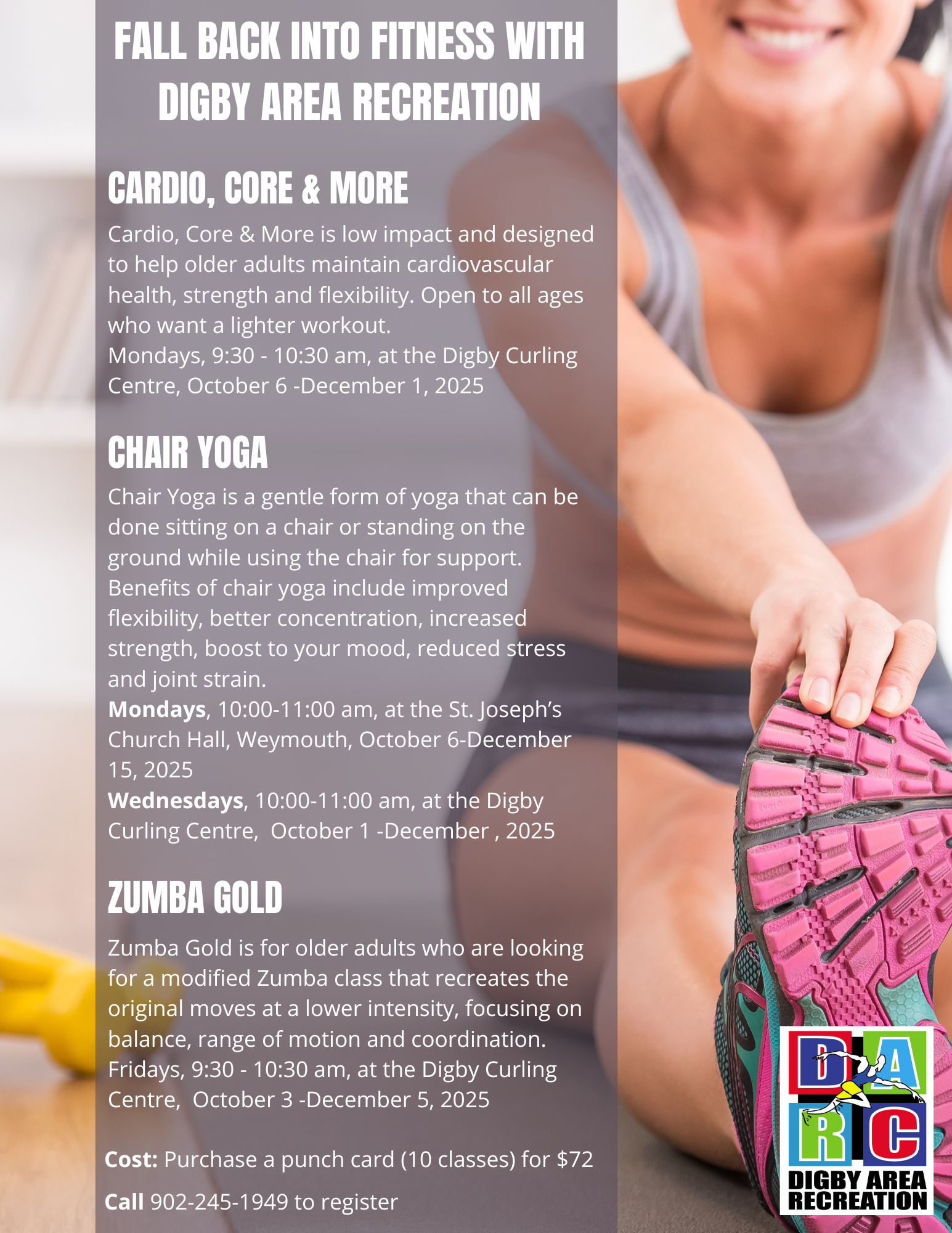The Digby Area Recreation Commission is a Non-Profit Organization. DARC provides and enables a very wide spectrum of leisure activities to enrich the lives of all citizens in the Town and Municipality of Digby. Programs & Events at a Glance